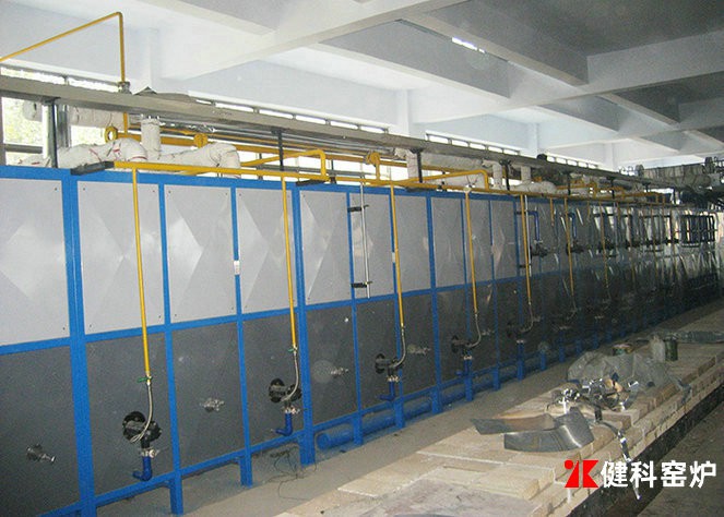 燃料燃燒係統:包括燃料輸送管道、燃料預熱、燃燒器等。隧色虎免费下载的加熱燃燒主要是重油,輕柴油,和天然氣煤氣,原有的直燃煤方式已不多用。油類燃燒配備有儲油罐和燃燒噴嘴。因油類成本較高使用較多的仍是天然氣和煤氣,天然氣是通過天然氣管道將天然氣輸送至窯爐有專門的天然氣燒嘴進行噴射燃燒。煤氣燃燒除了有專一的煤氣管道輸送至爐窯外,隧色虎免费下载用戶大都自備有煤氣發生爐進行煤氣的生產,由煤氣發生爐所產的煤氣經過管道輸送至隧色虎免费下载燃燒室,通過煤氣燒嘴進行噴射燃燒。